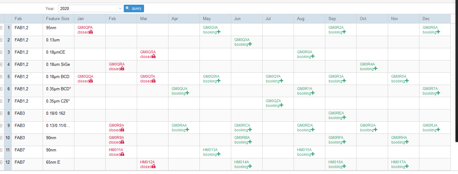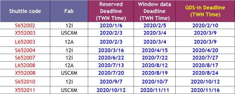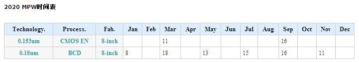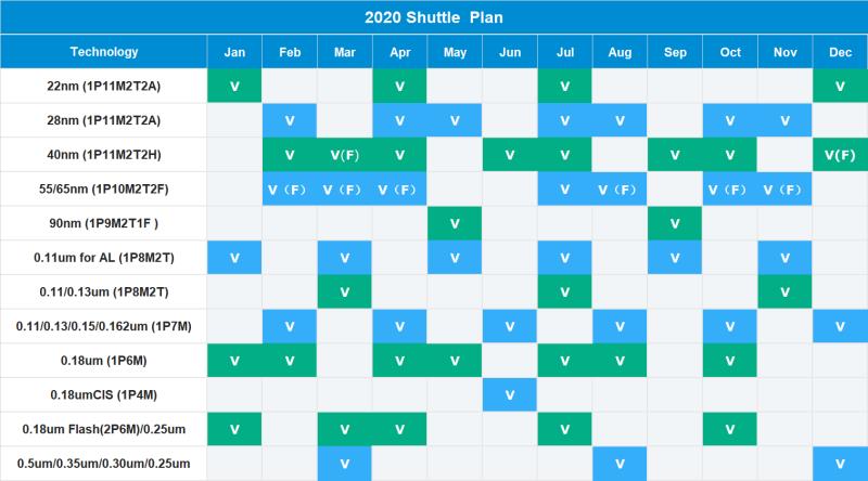 2020年各Foundry MPW流片时间表