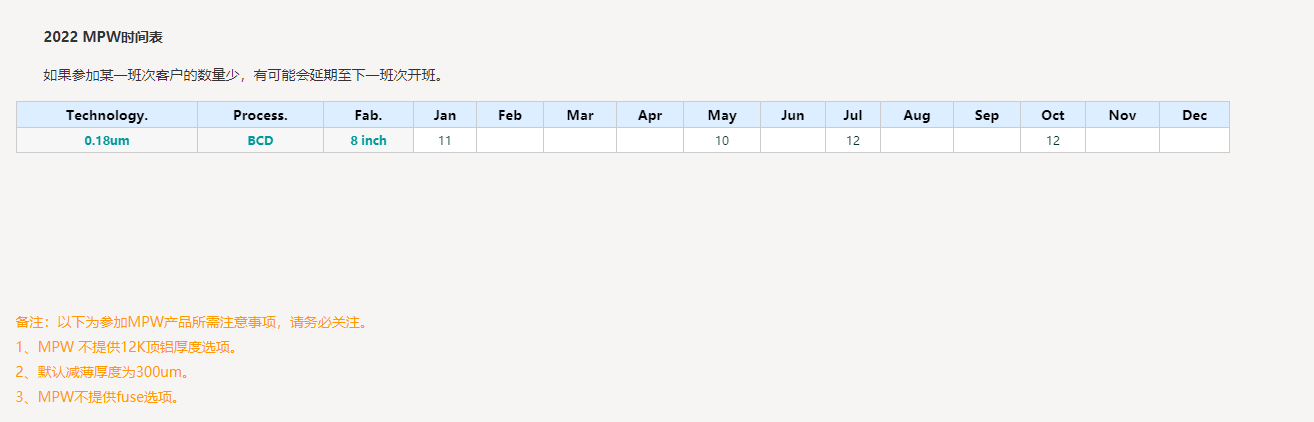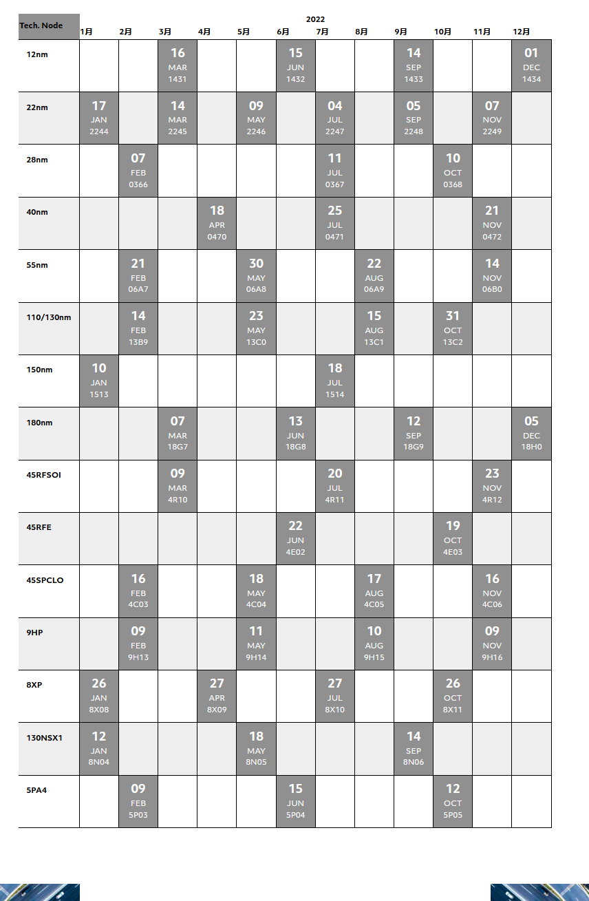 2021年各Foundry MPW流片时间表