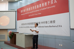 7月28日下午,中村教授分别在西安电子科技大学和西安交通大学进行了两场主题讲座,并受聘成为两所高校的名誉教授。讲座现场座无虚席,听众踊跃提问,气氛热烈,中村教授表示,将积极为两所学校的学术科研及学科发展贡献力量。讲座中,中村教授结合自身经历讲述了从事科研工作的感悟,并鼓励广大师生敢于坚持既定的研究方向,以恒心支撑学术,坚持不断探索,走出国门学习把握学科前沿,体验海内外不同的教育体系和理念,为更好的开展科学研究、取得丰硕成果奠定基础。